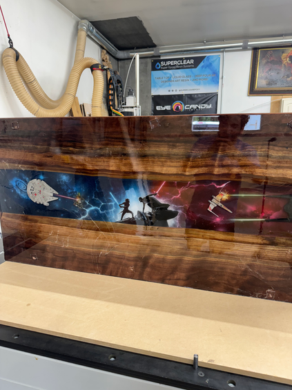 This project was about a year of thinking and doing and trying to create the best possible Star Wars table out there. Many different hands have touched this table to create 1 unique project that even exceeded my expectations and made many new relationships with my work. I have many more ideas like this and hope to create some more like it!